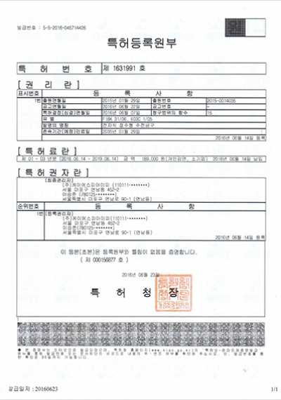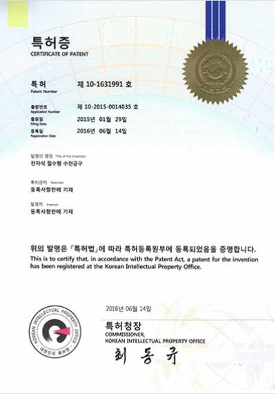 전자식절수수전 특허증