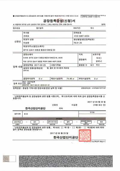 공장등록 증명서